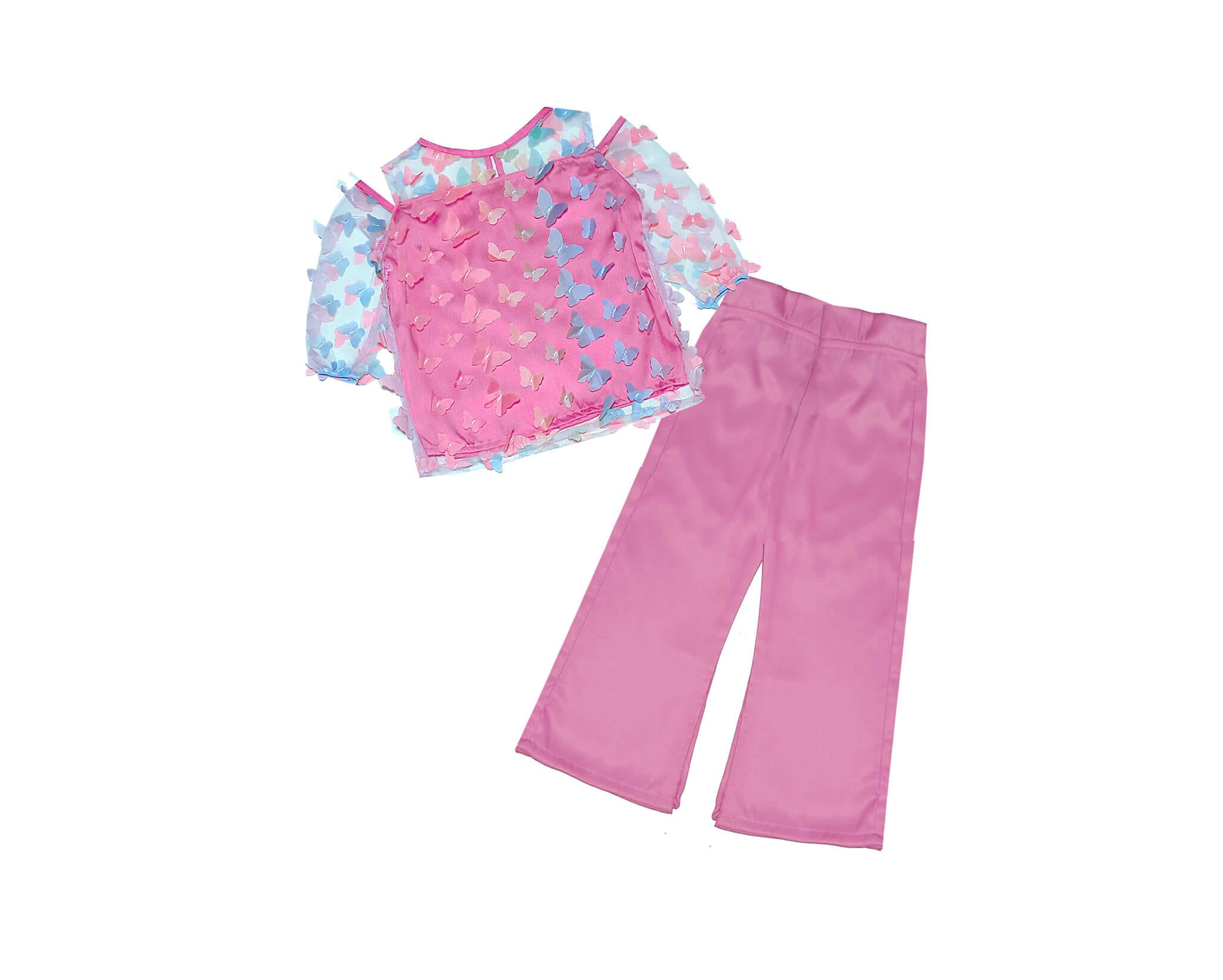 3D Multi Butterflies Net Western Top with Satan Silk Flapper Trouser – Pink
