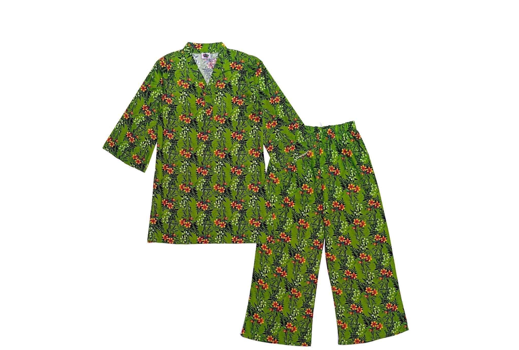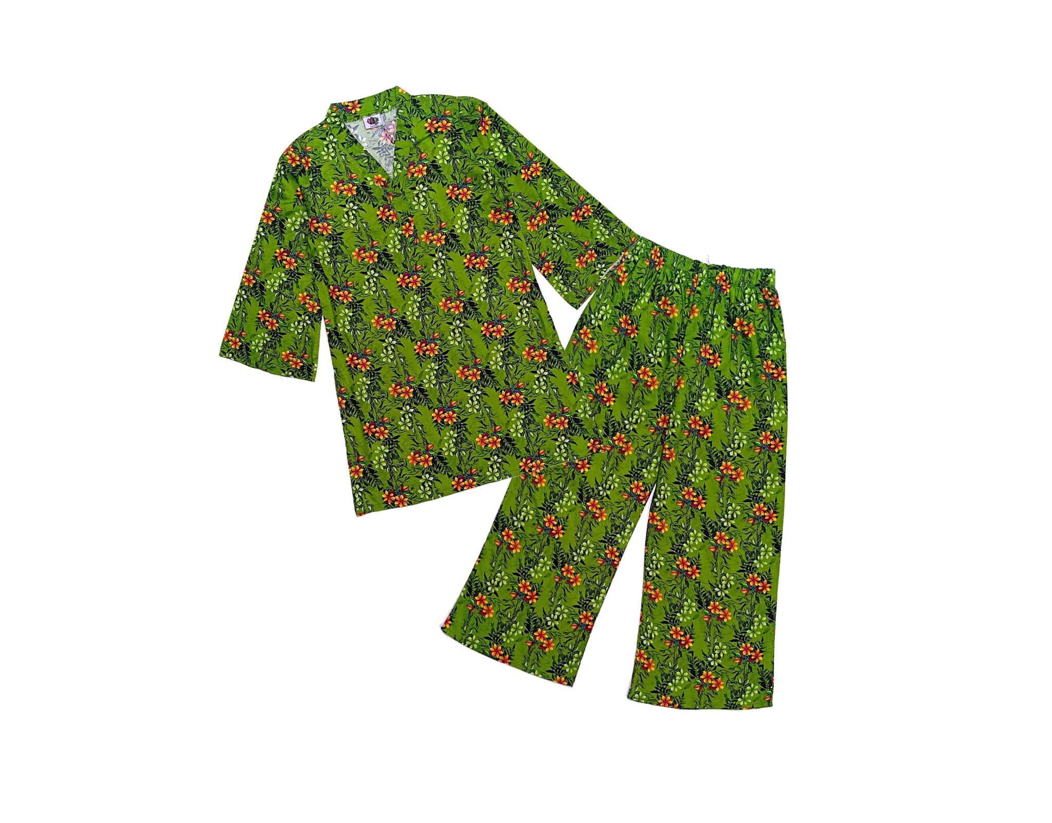 Blooming Flowesr Flapper Sleeves Linen Kurti & Trouser – Olive Green