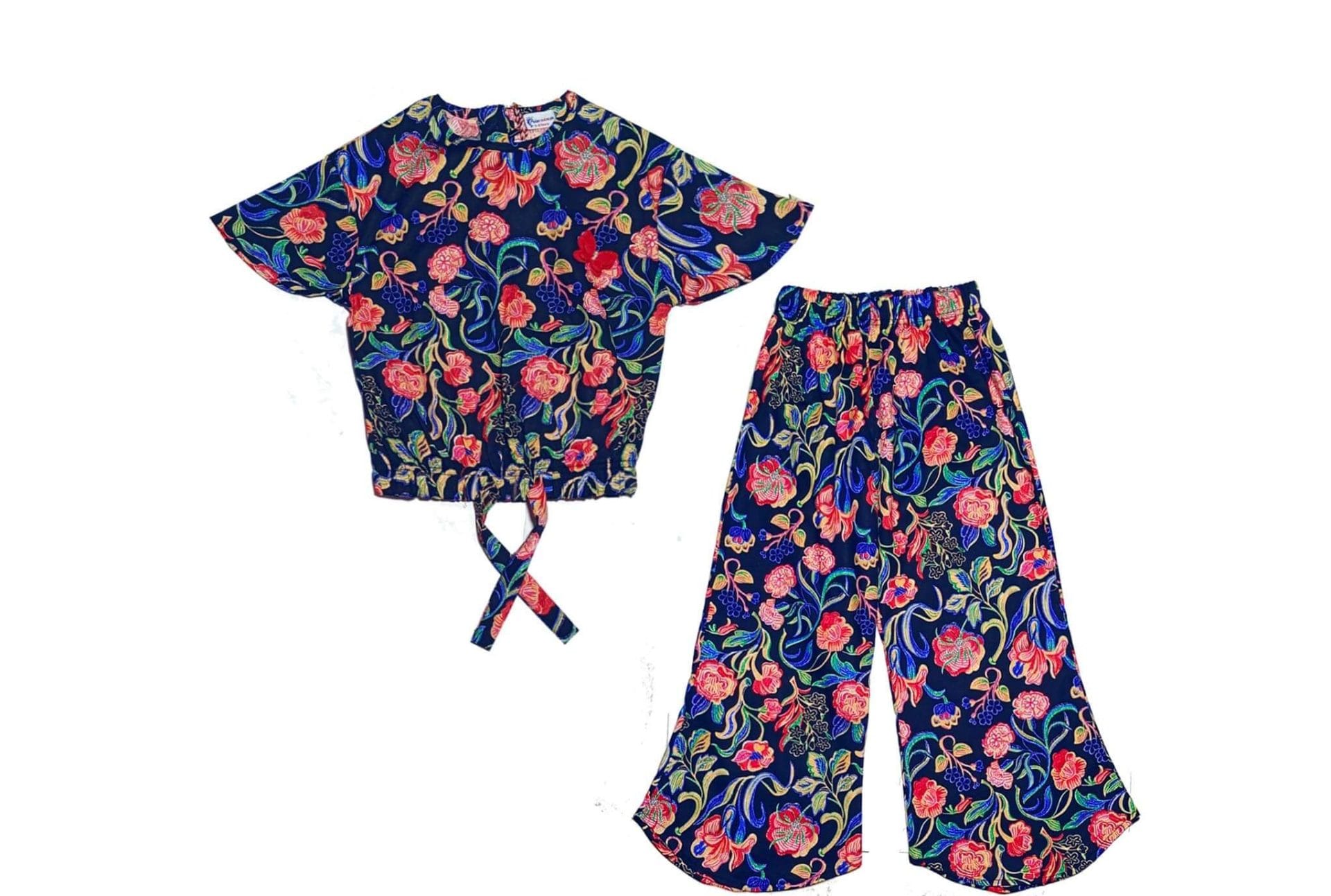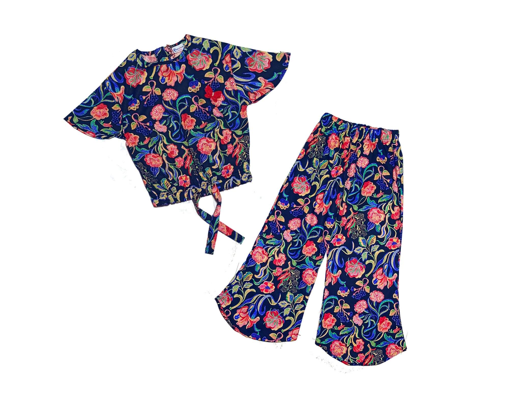 Blooming Red Rosess Fish Cut Cotton Top & Flapper – Blue