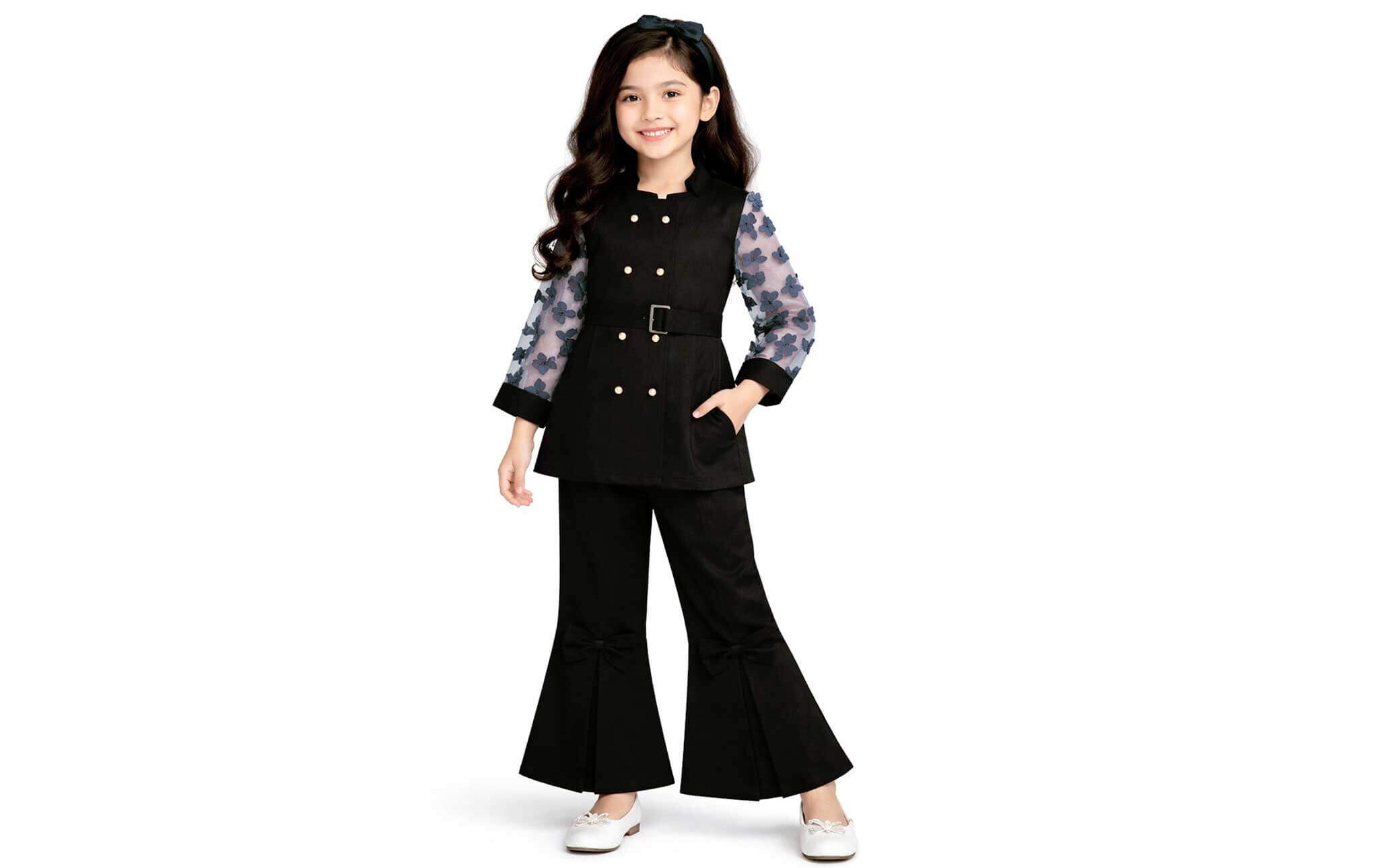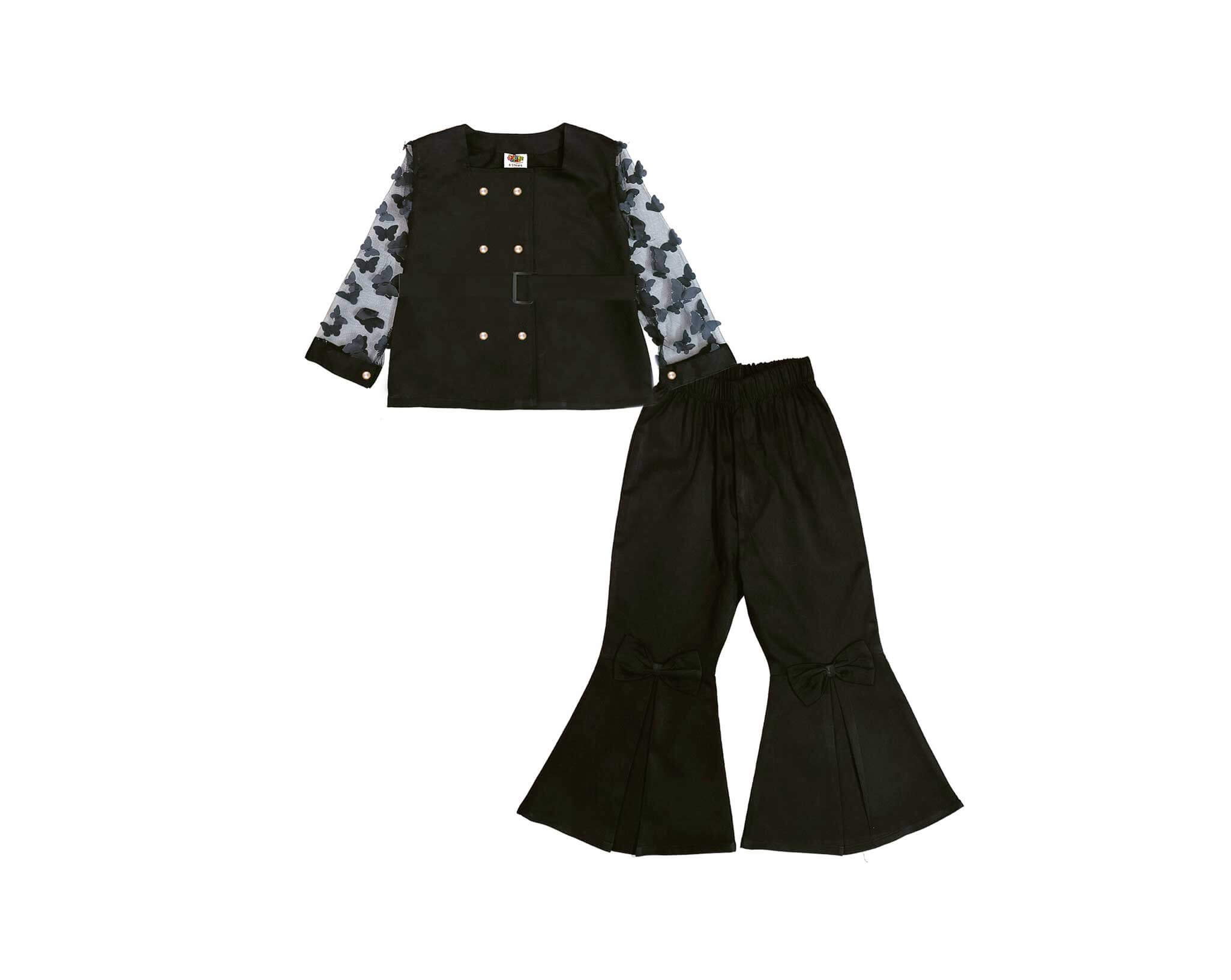 Butterfly Girl Stylish Cotton outfit with flared pants-Black