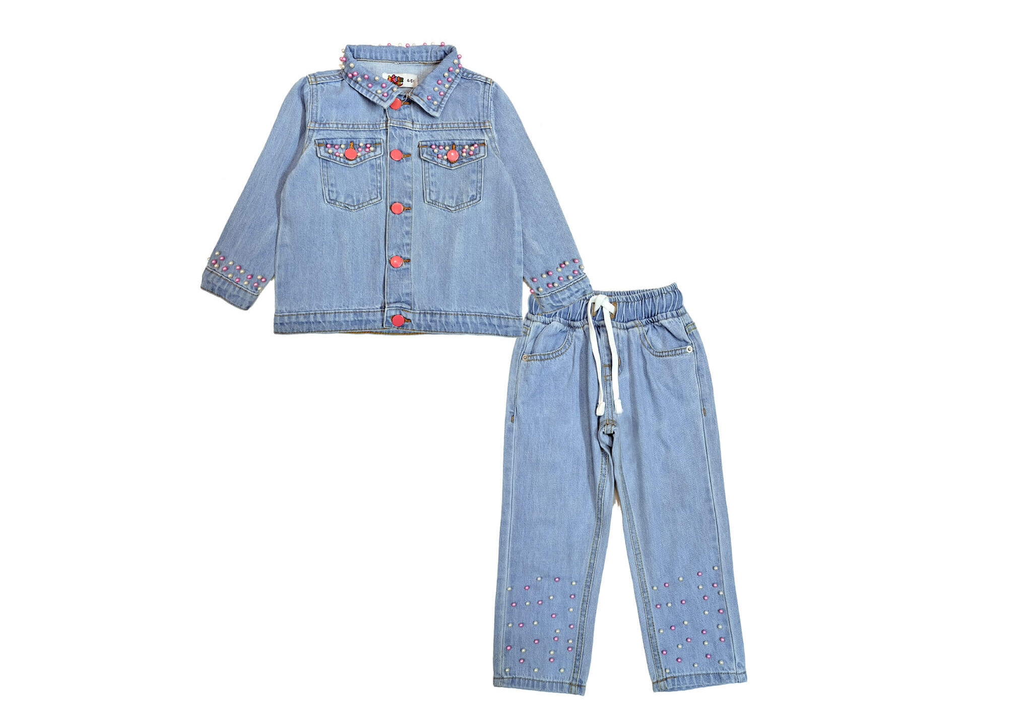 Classic Pearls Fashion Denim Jacket & Pant – Sky Blue