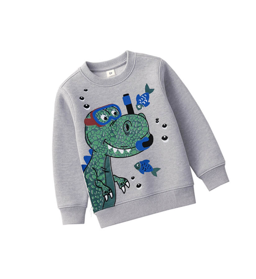 SKU: LC-130126-Diver Dino Fleece Sweatshirt - Gray-1D65R2 Categories: , , , ,