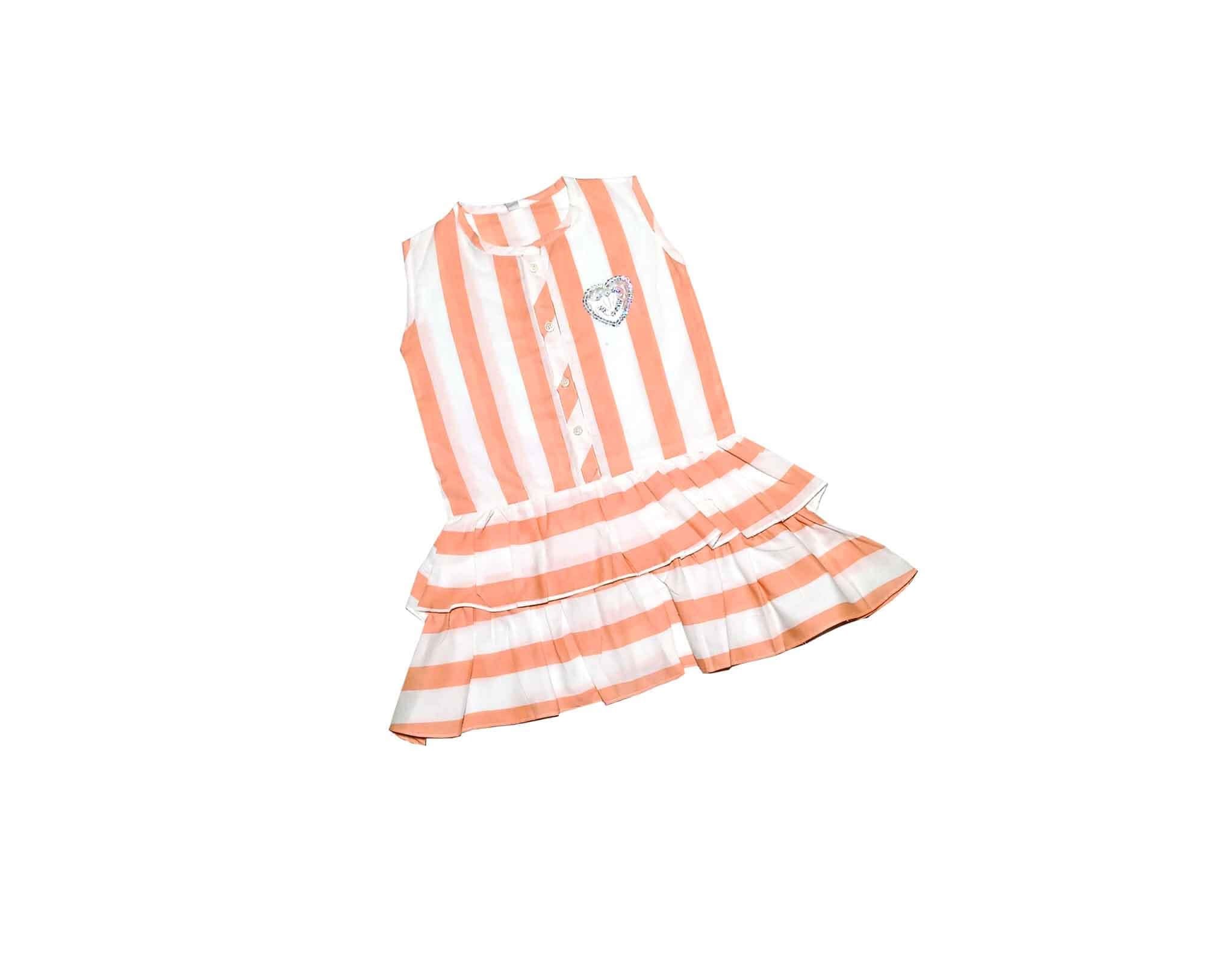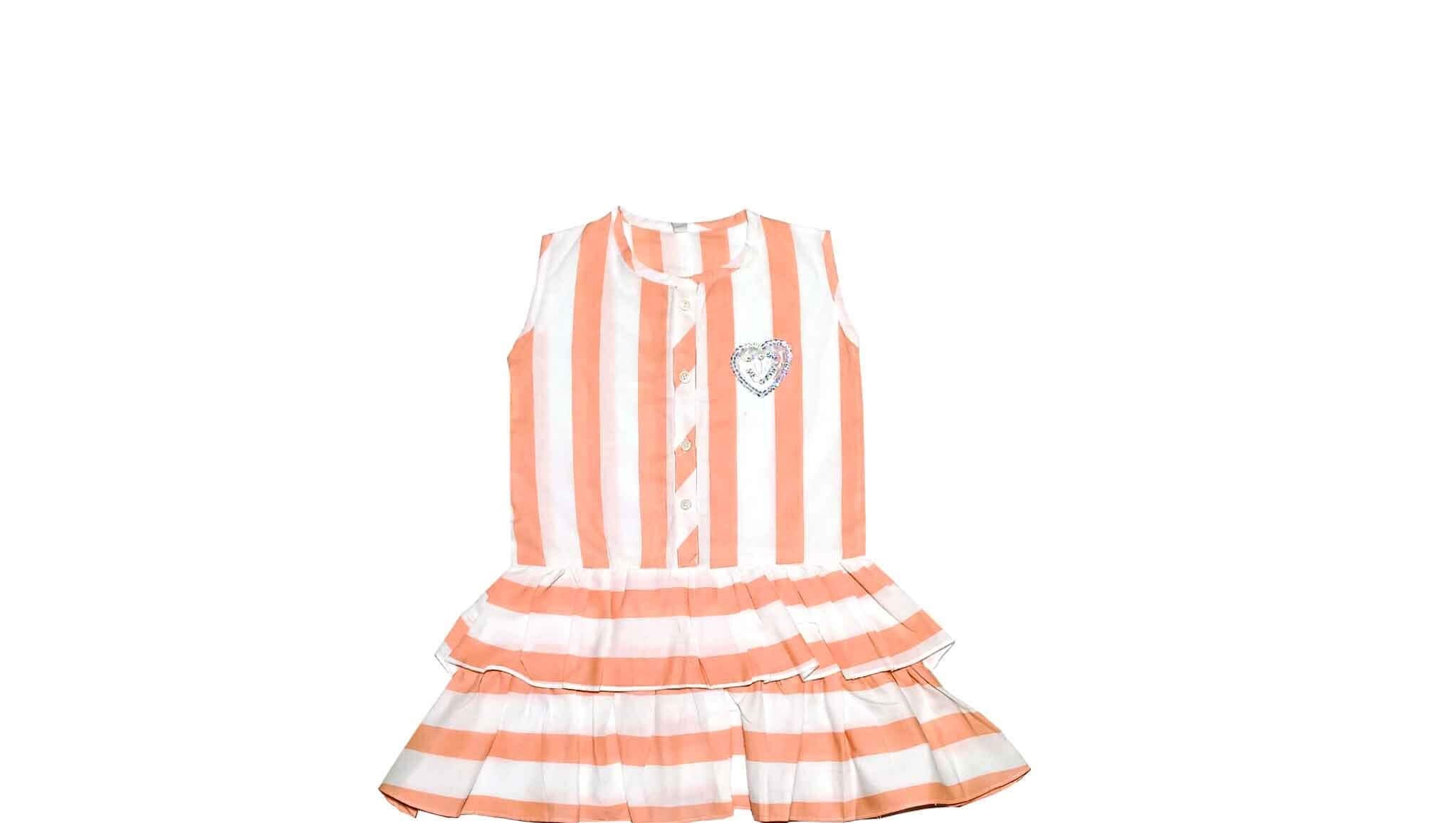 This cotton-rich outfit is perfect for Summar days. It includes Double Frill Peach Stripe Cotton Frock – White