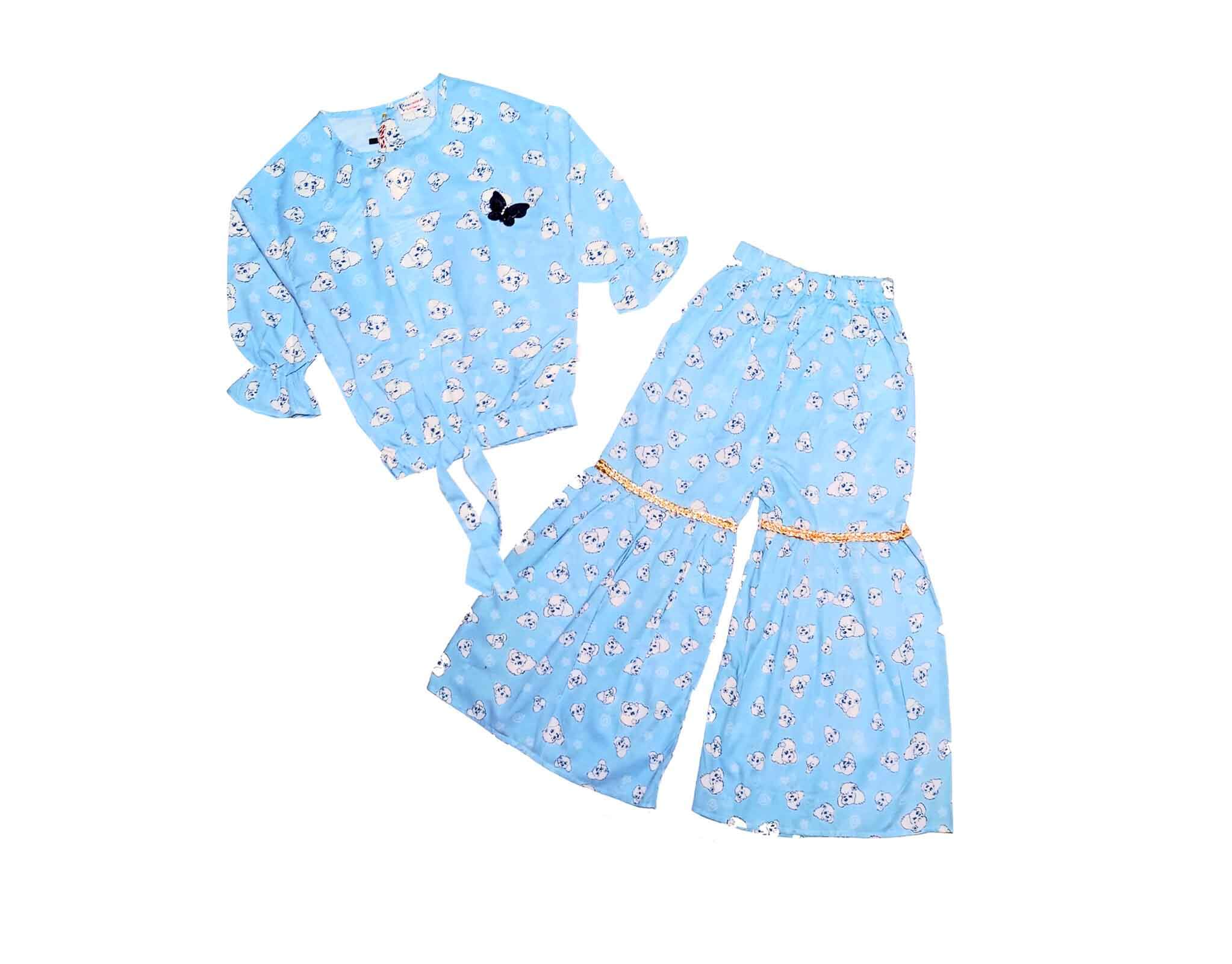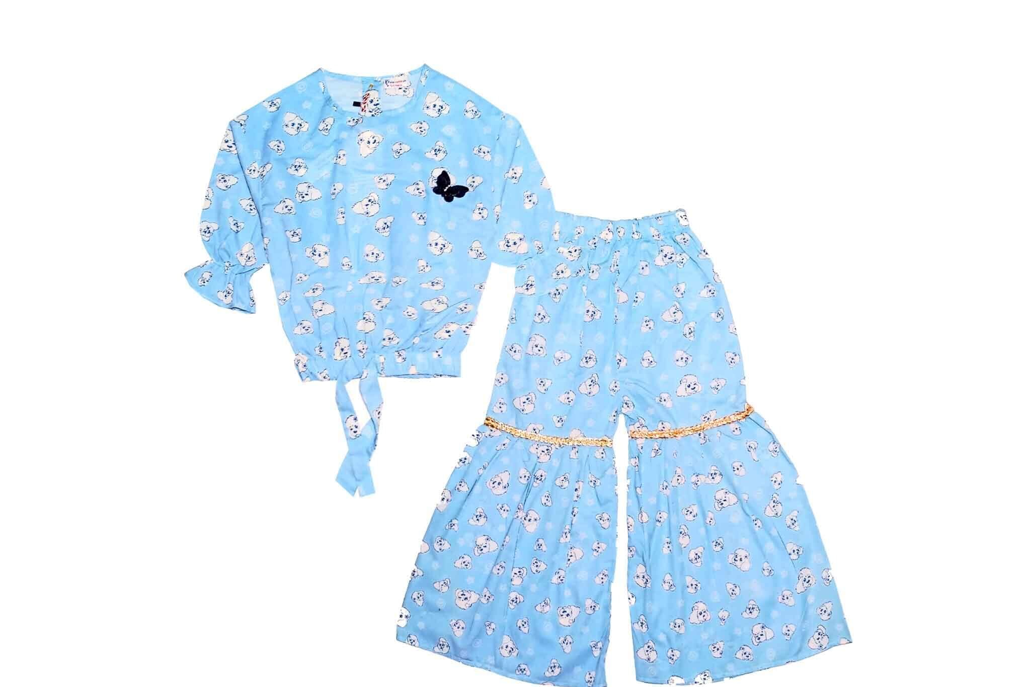 Festive Cotton Short Top with Gharrara – Sky Blue