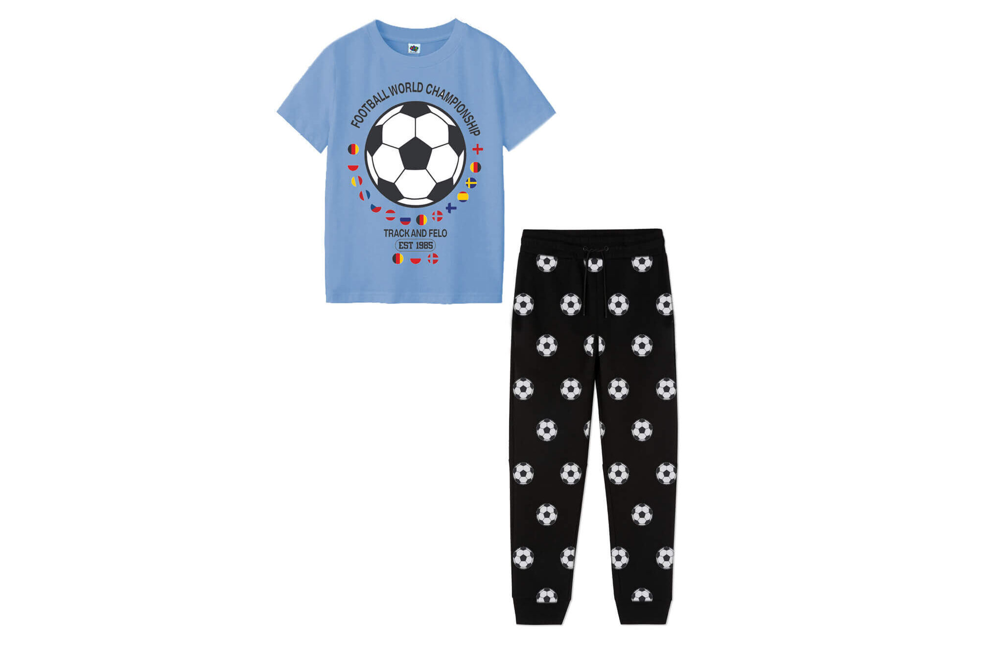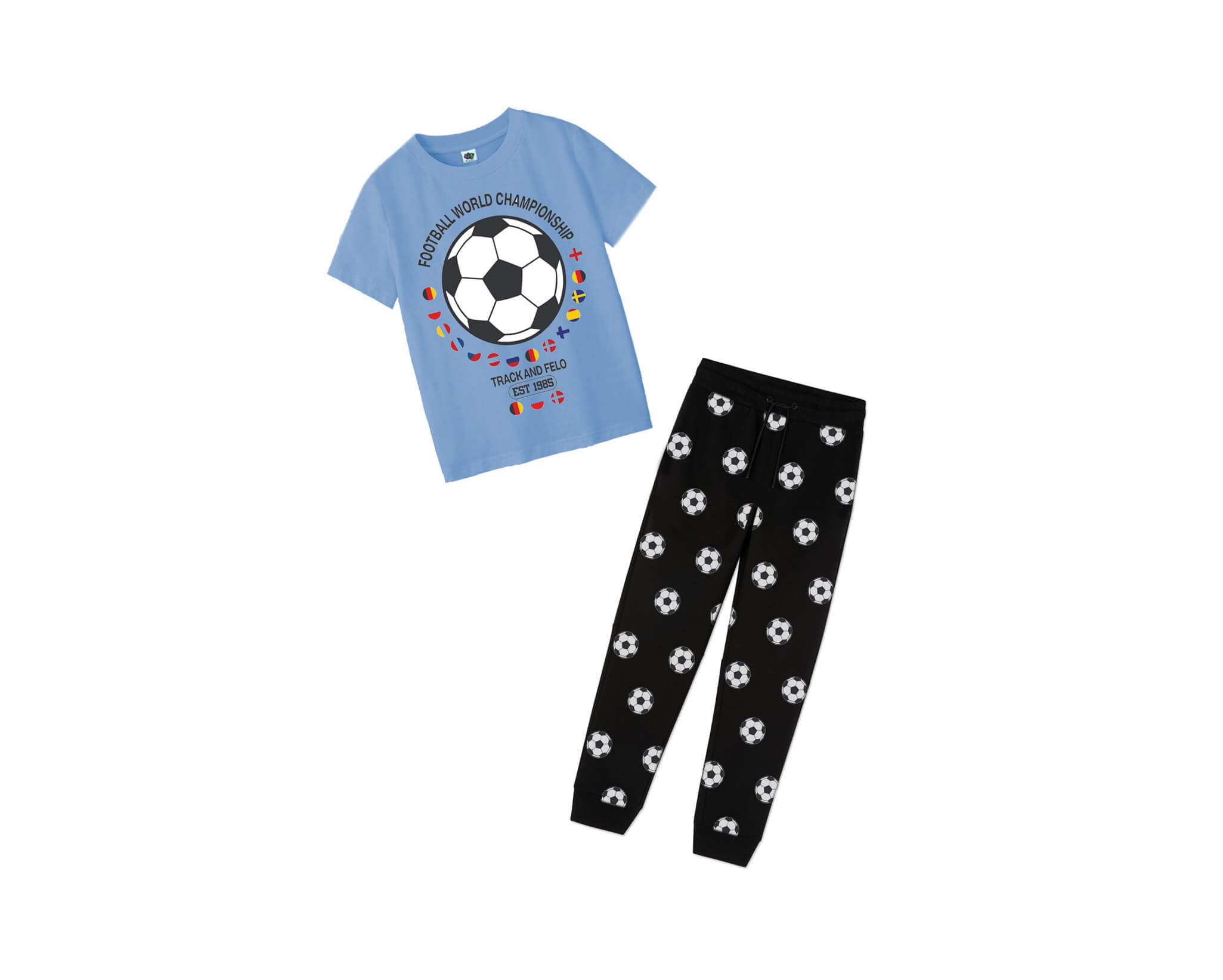 Football World Championship Tee & Trouser – Sky Blue & Black