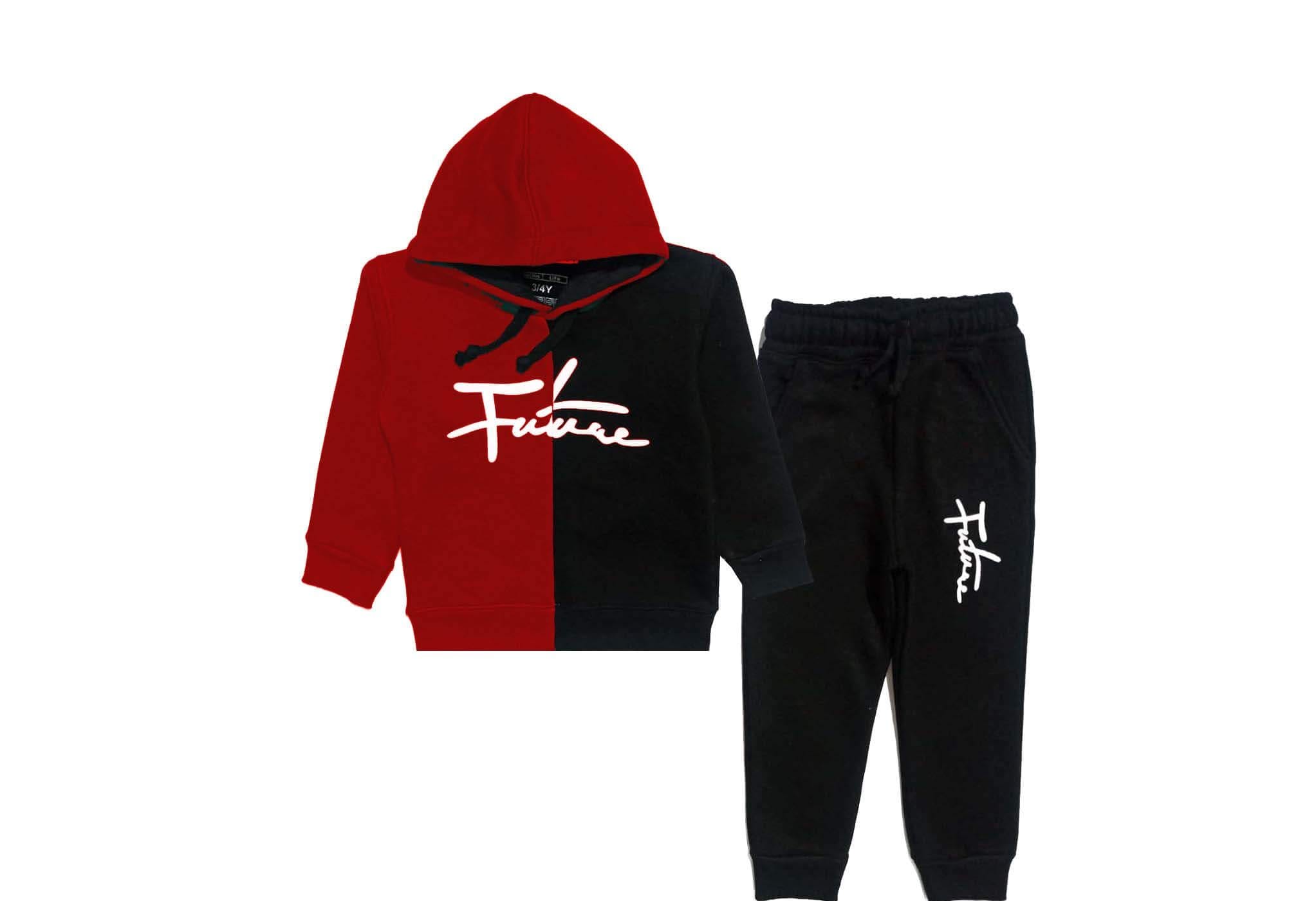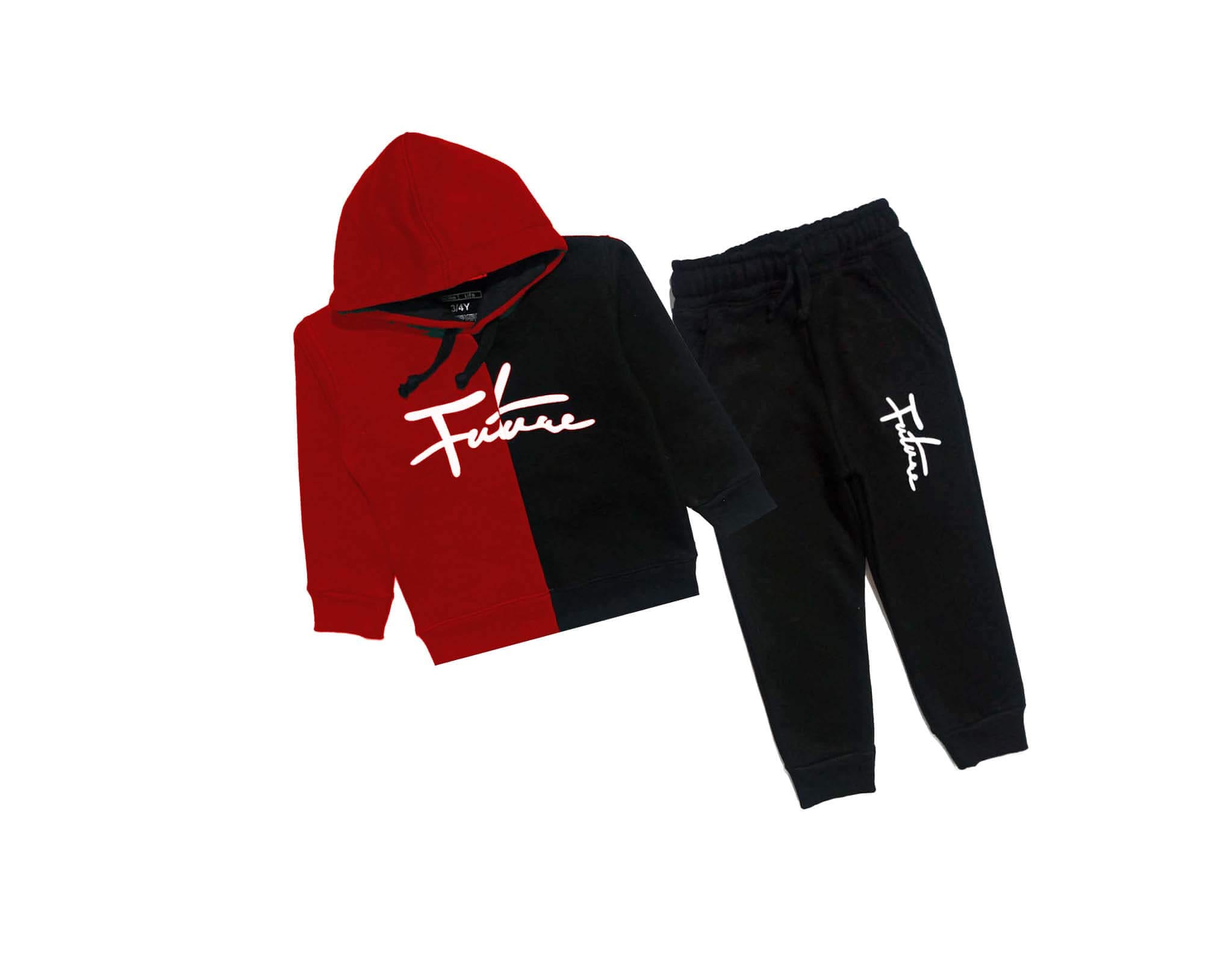 Future Trendy Penal Fleece Hoodie Tracksuits – Red & Black
