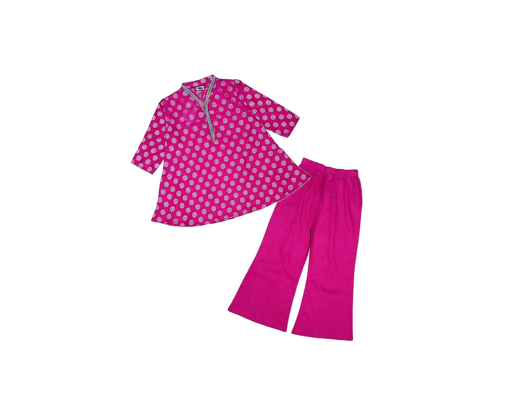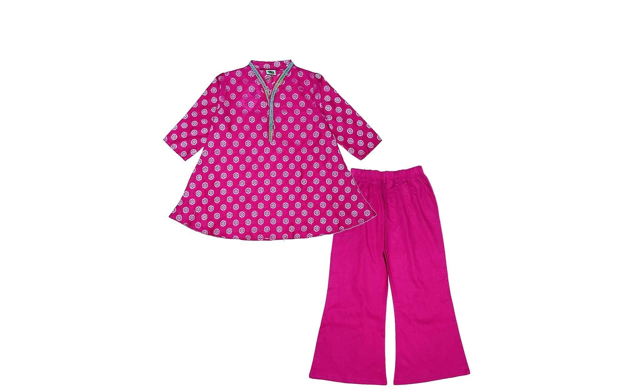 Geomatric Flowers Jacard Umbrella Frock & Flare Trouser – Shocking Pink
