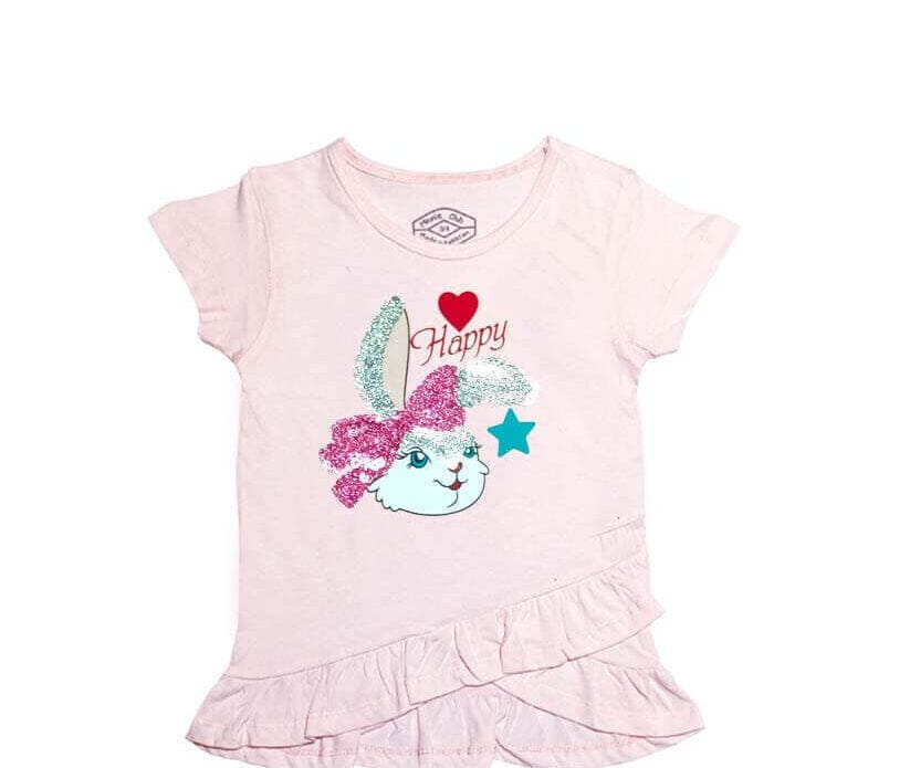 Happy Bunny Heart Sequence Tee shirt – Baby Pink