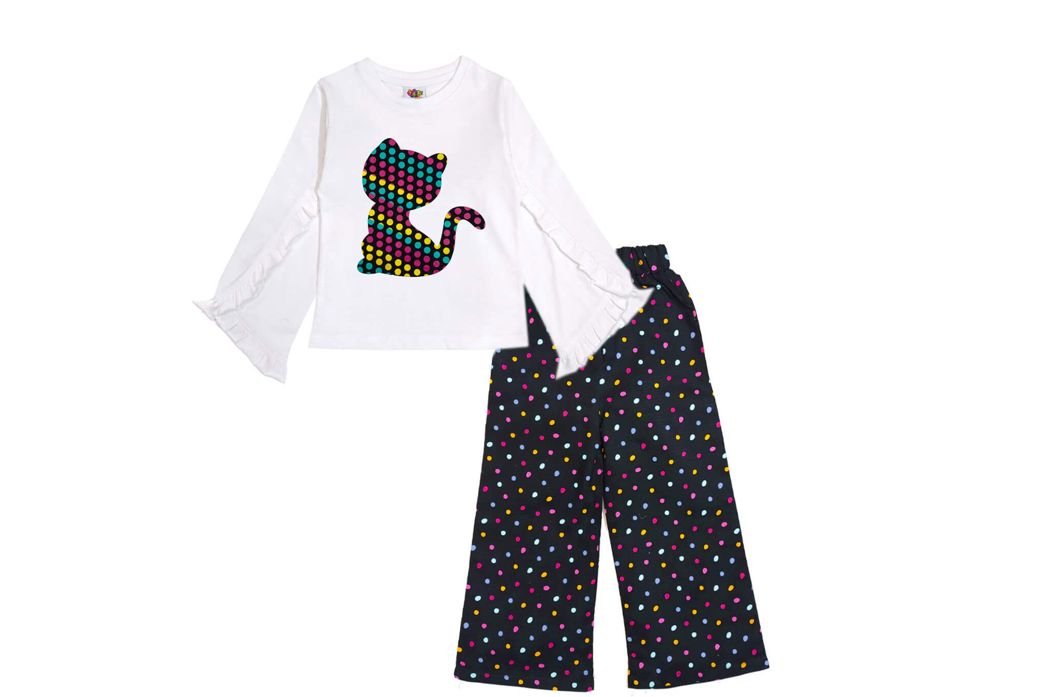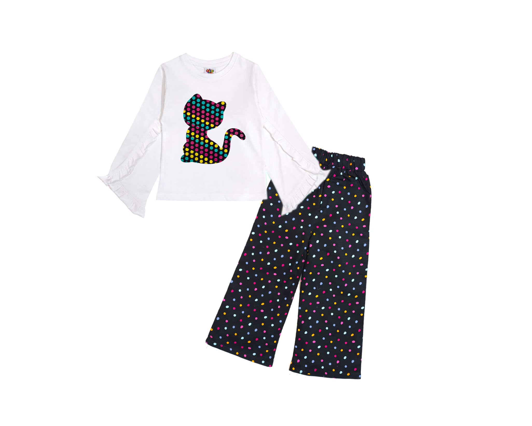 Happy Kitty Polka Palazzo Set – White & Black