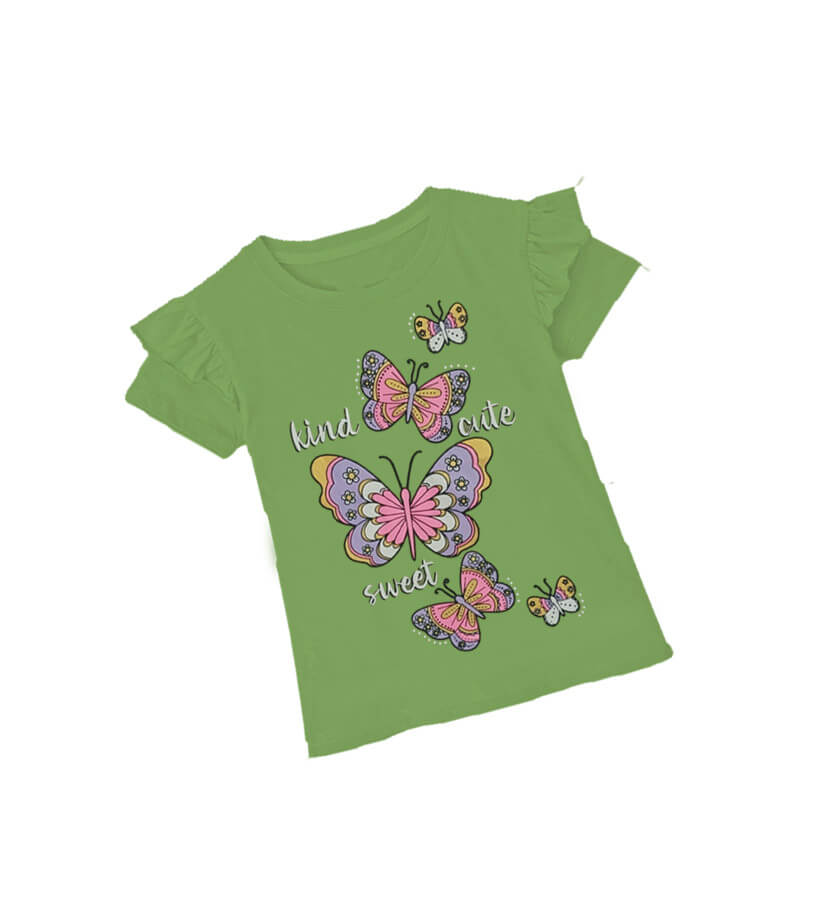 Kids Cute Sweet Butterfly Print Tee Shirt – Olive Green