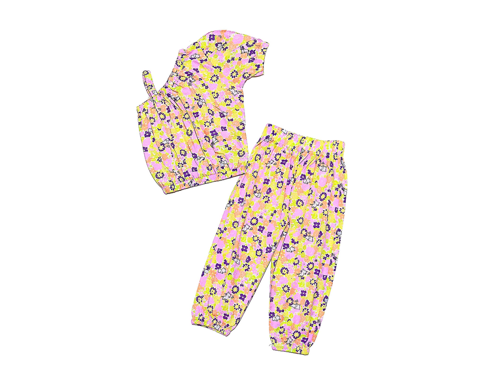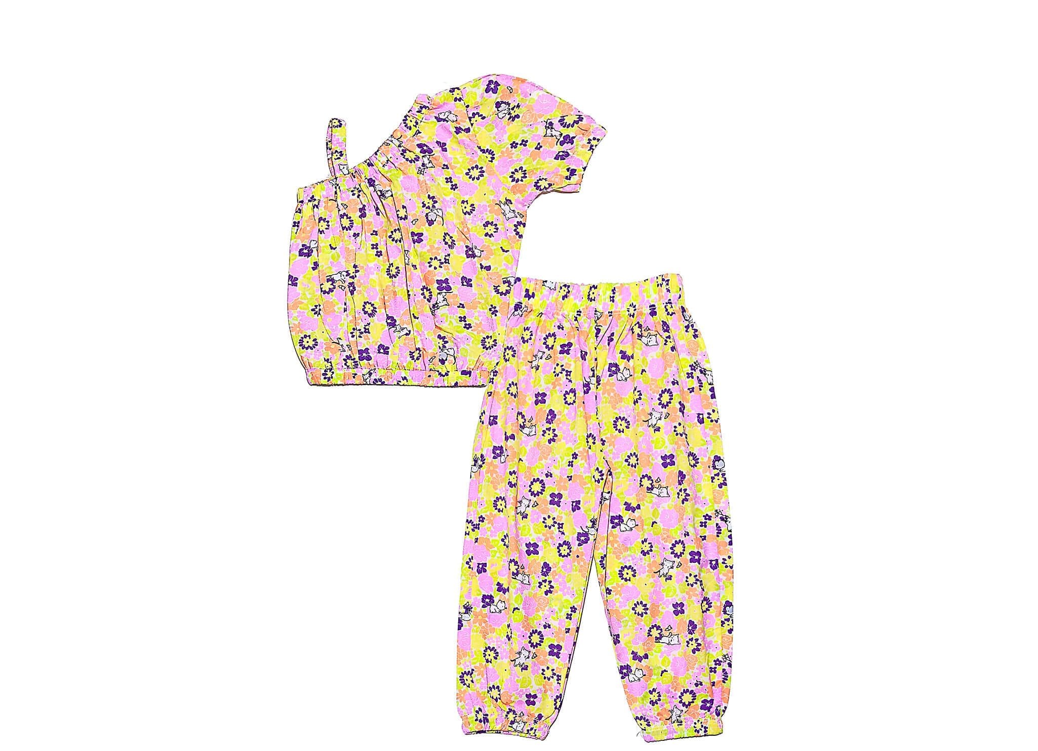 Kitty In Garden Cross Shoulder Style Cotton Top & Trouser – Skin