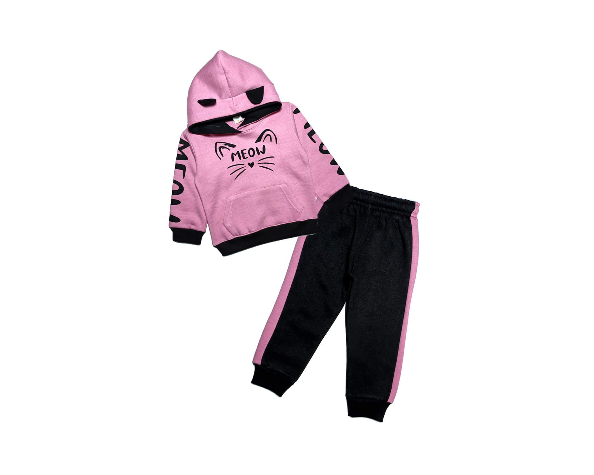 Meow with Ear Fleece Hoodie Tracksuit – Baby Pink & Black