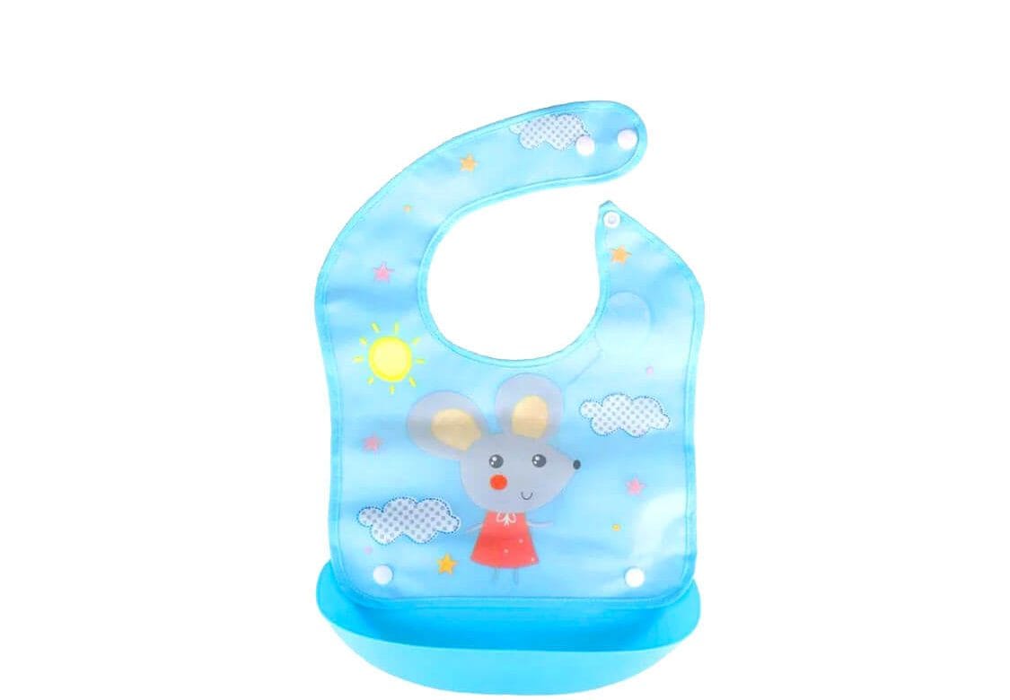 Mice Silicone Waterproof Baby Bibs with Tray -Blue