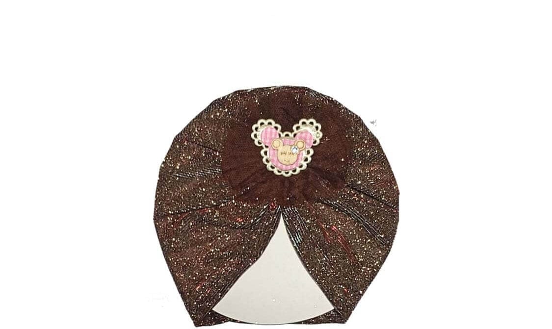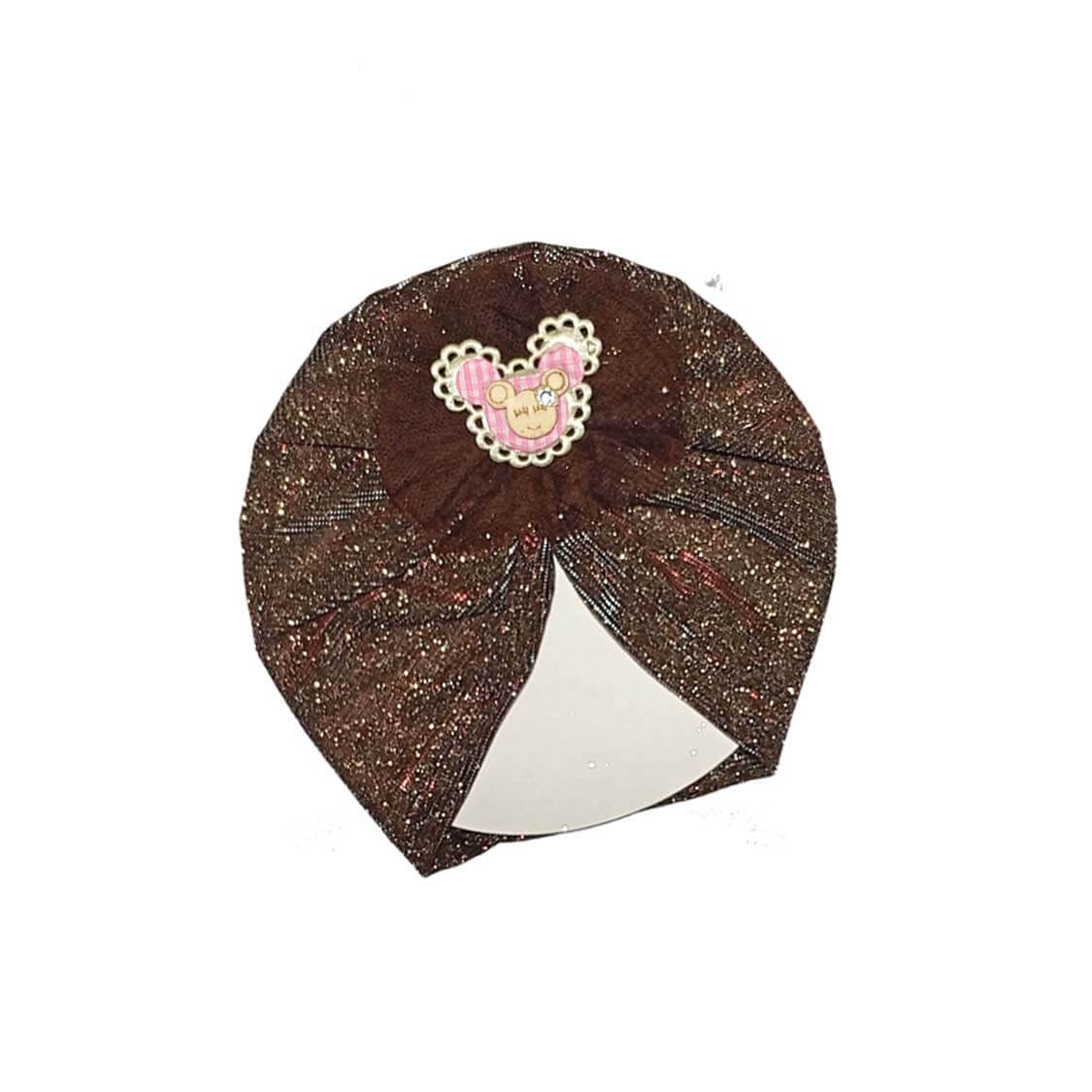 Minnie Net Flowers Moon Light Turban Cap For Babies – Dark Brown