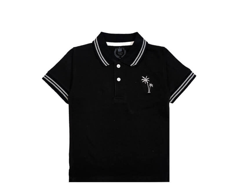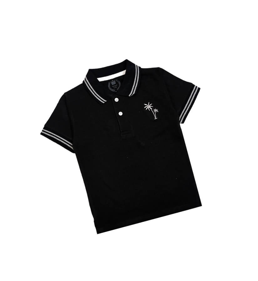 Palm Tree White Tipping Colar Polo Shirt – Black