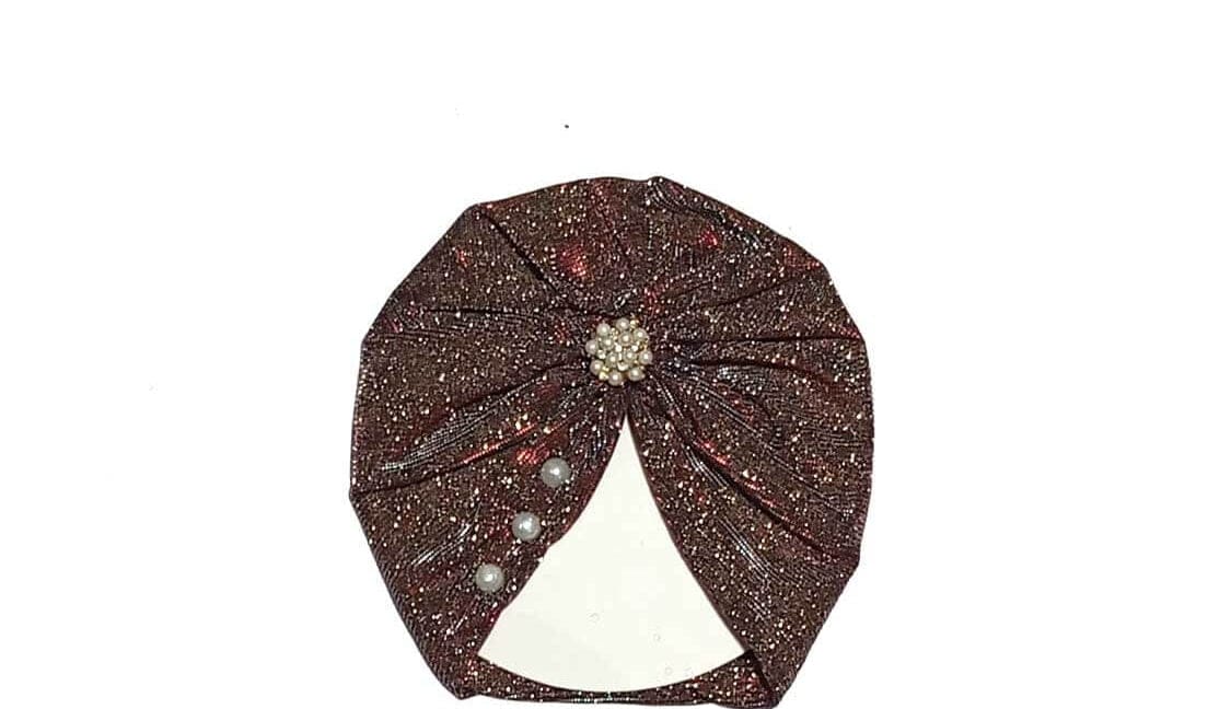 Pearls Brouch Moon Light Turban Cap For Babies – Brown