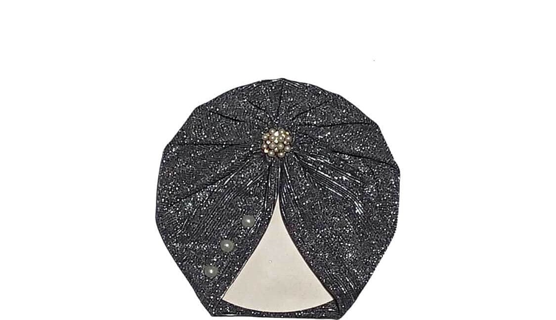 Pearls Brouch Moon Light Turban Cap For Babies – Grey