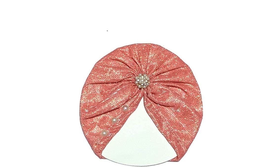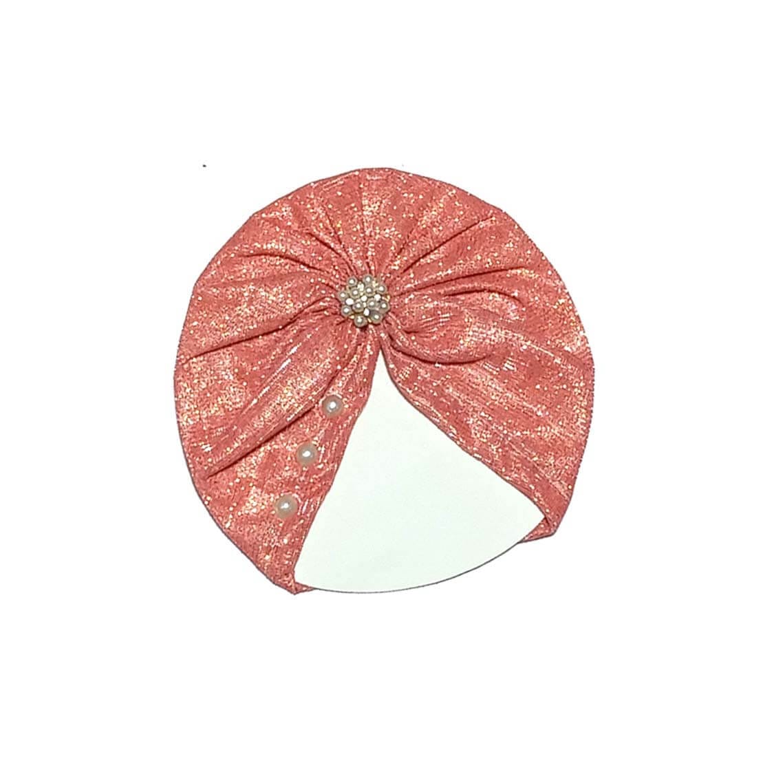 Pearls Brouch Moon Light Turban Cap For Babies – Peach