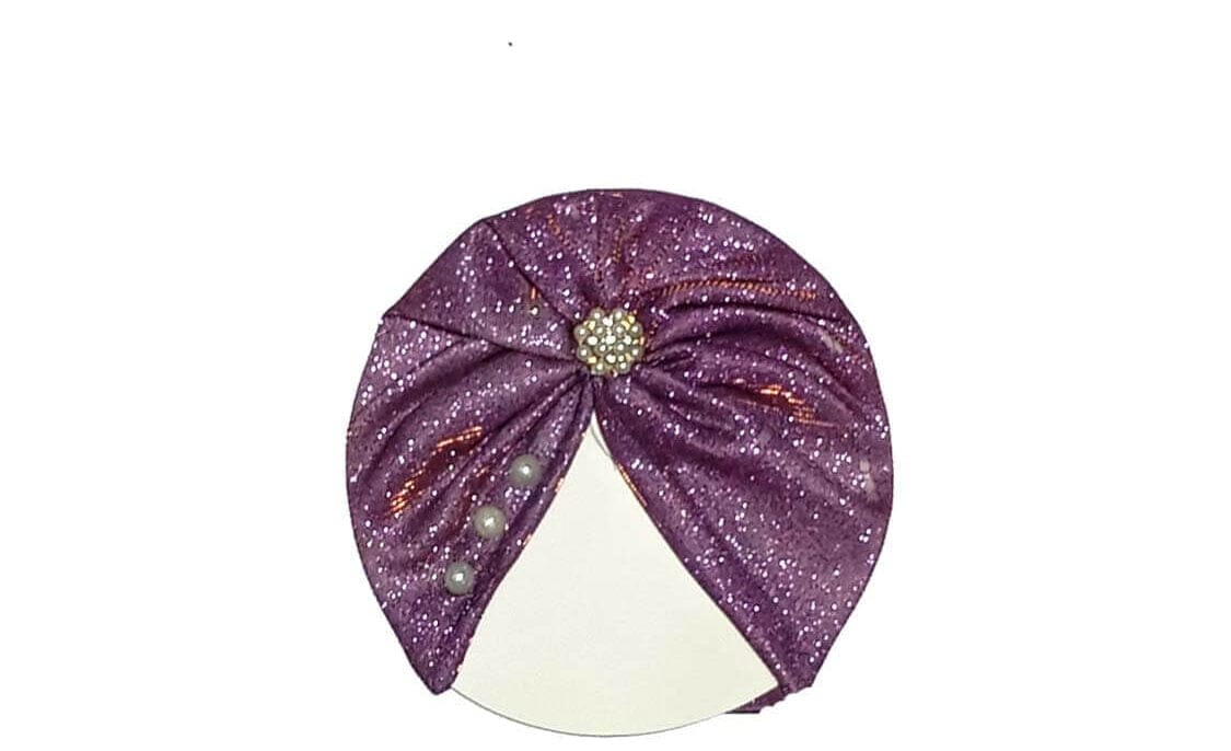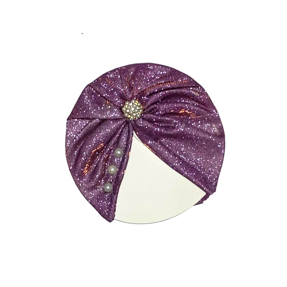 Pearls Brouch Moon Light Turban Cap For Babies – Purple