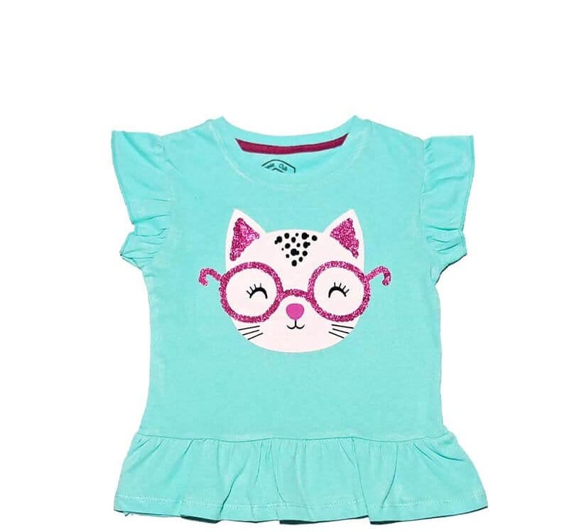 Pink Sequence Glasses Cat Tea Shirt – Aqua