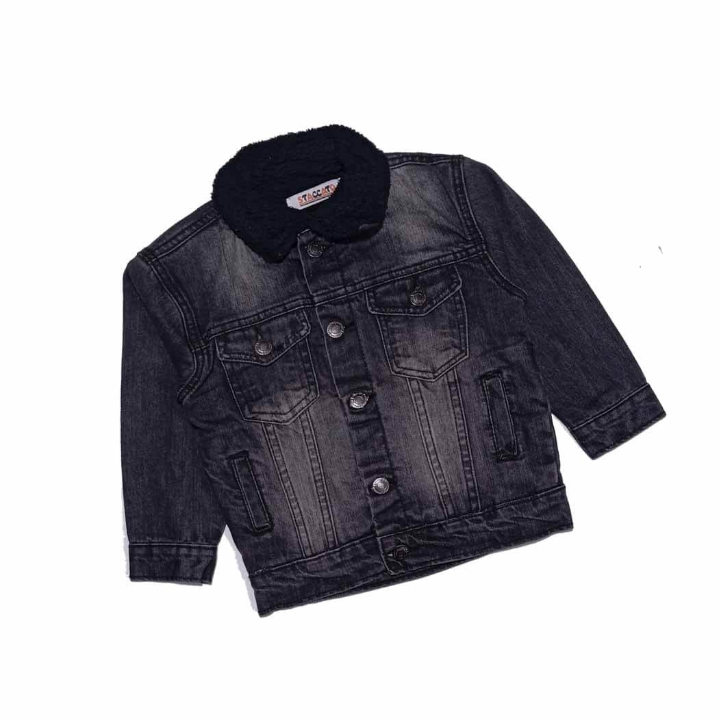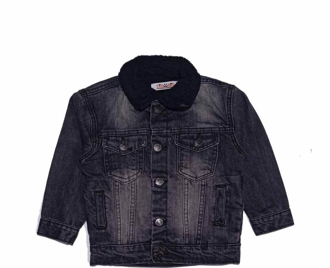 Collared denim blackish blue denim jackets featuring long sleeves with buttoned cuffs Chest flap pockets & faded effects Button up front. A stylish jeans demin jacket for boys.