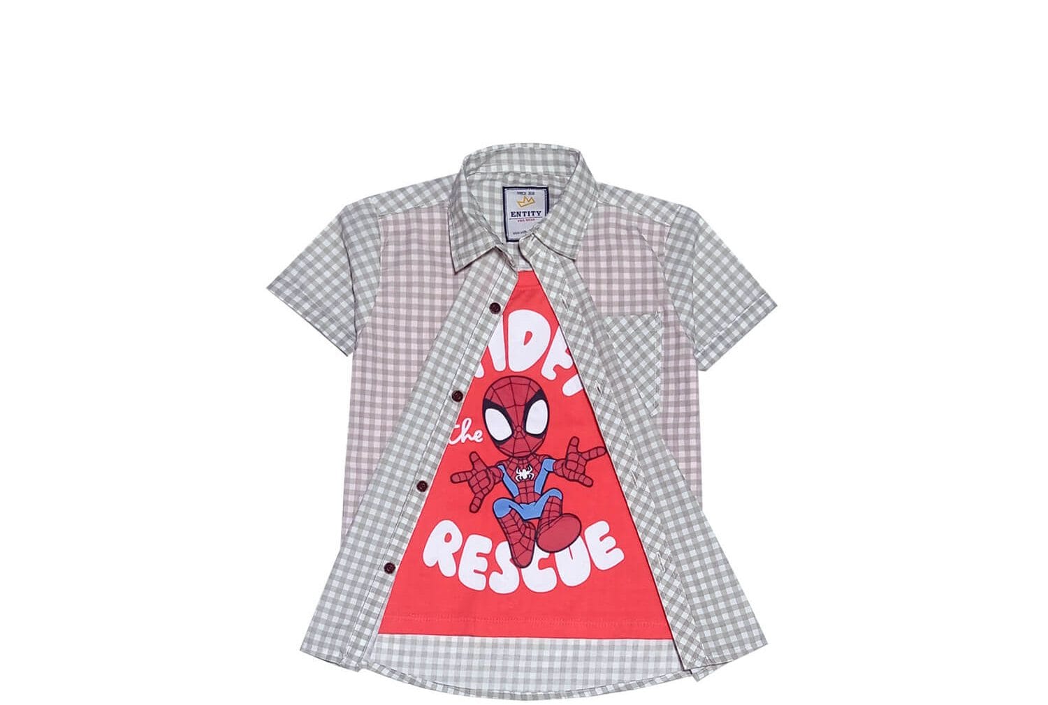 Spidy Rescue Twofer Double Cotton Cheked Casual Shirt-Carrot & Grey