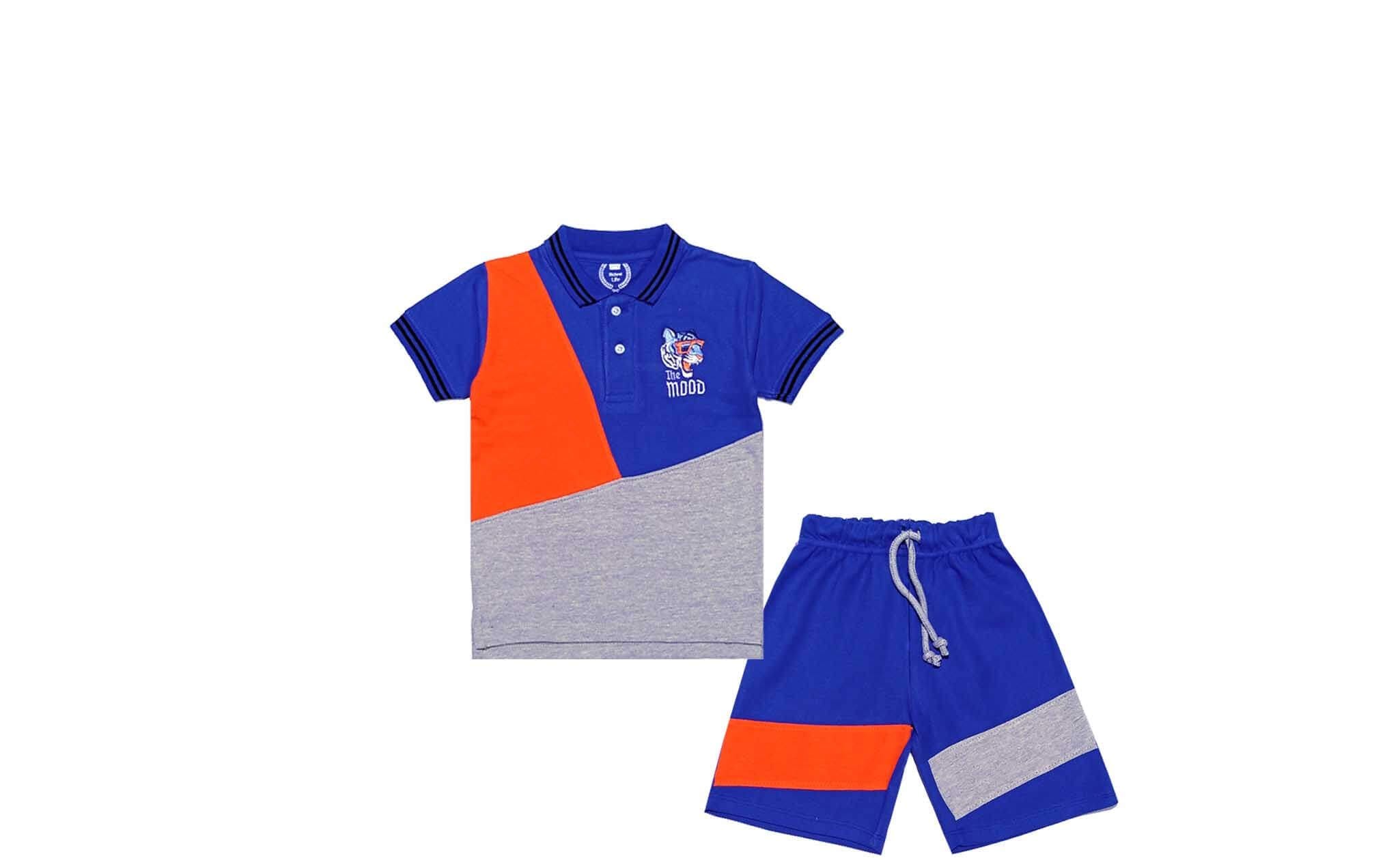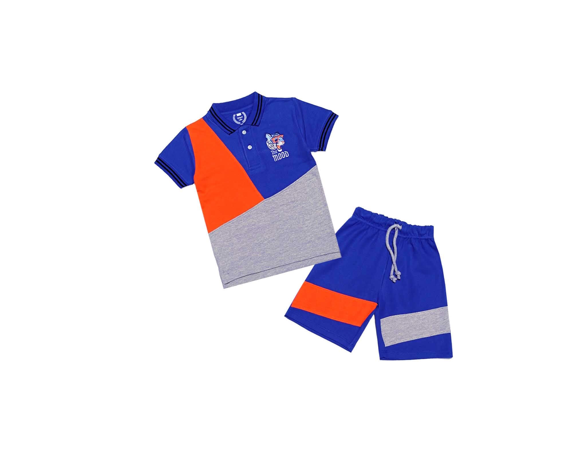 Stylish Penal Lion Mood Logo Peque Fabric Polo & Short – Orange Royal Blue & Heder Grey