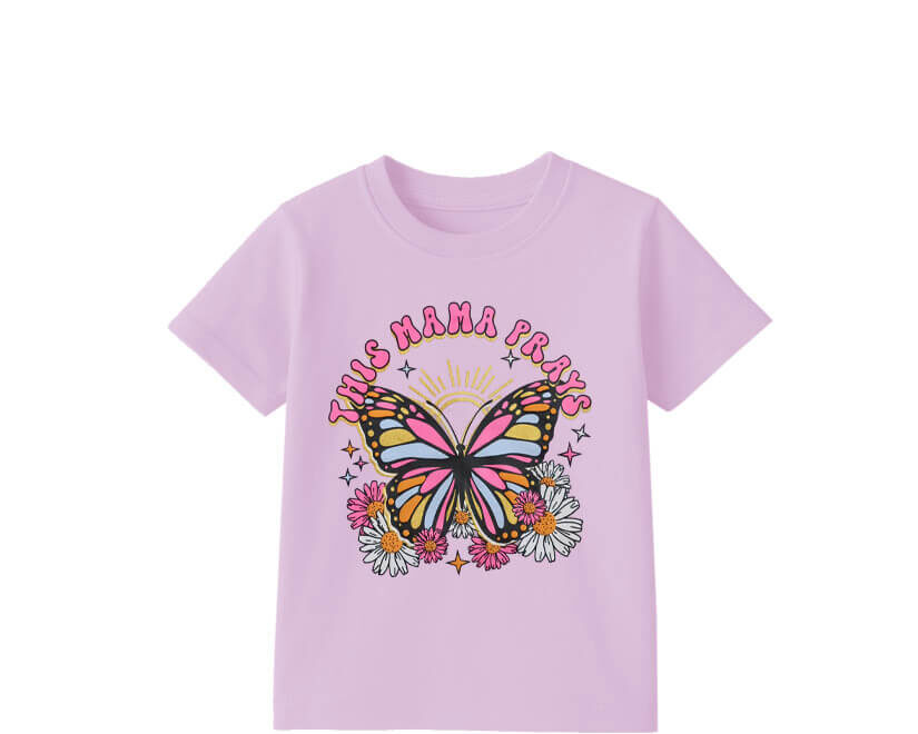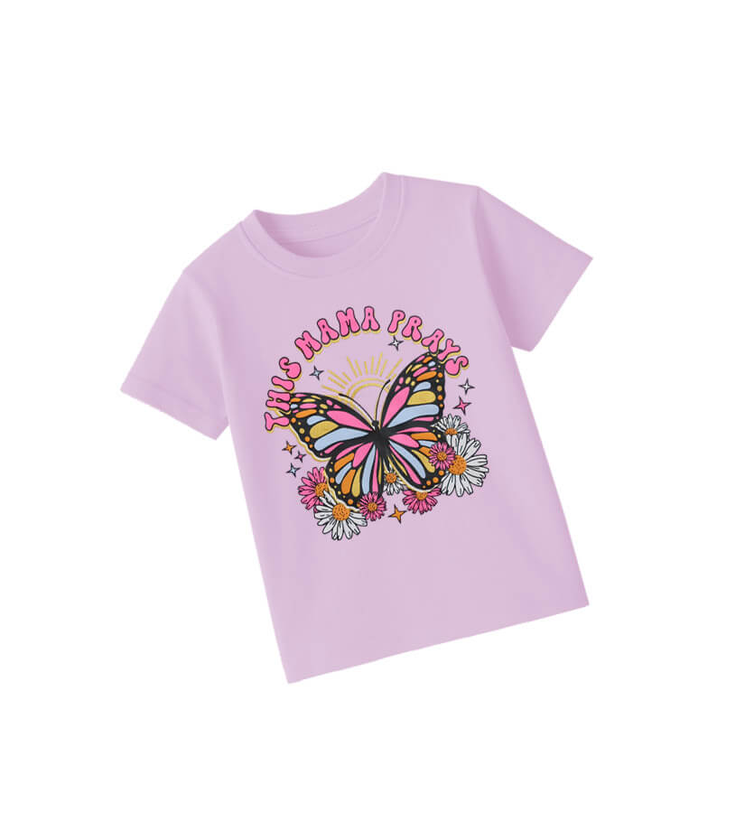 This Mama Parays Butterfly Tee Shirt- Soft purple