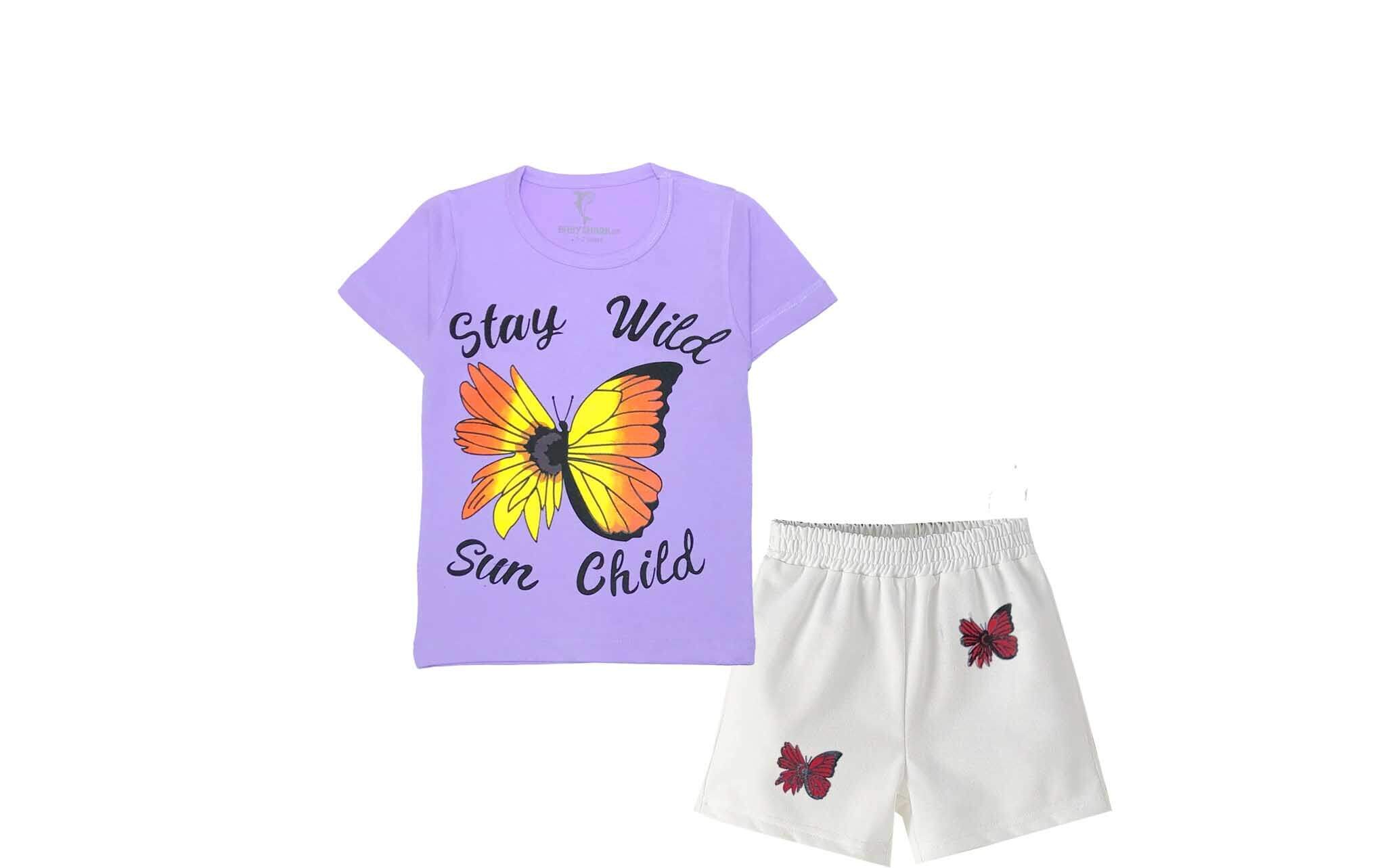 This two-piece cotton-rich outfit is perfect for warm days. It includes a t-shirt featuring a round neck, short sleeves, and a fun graphics on the front, teamed with comfy shorts.